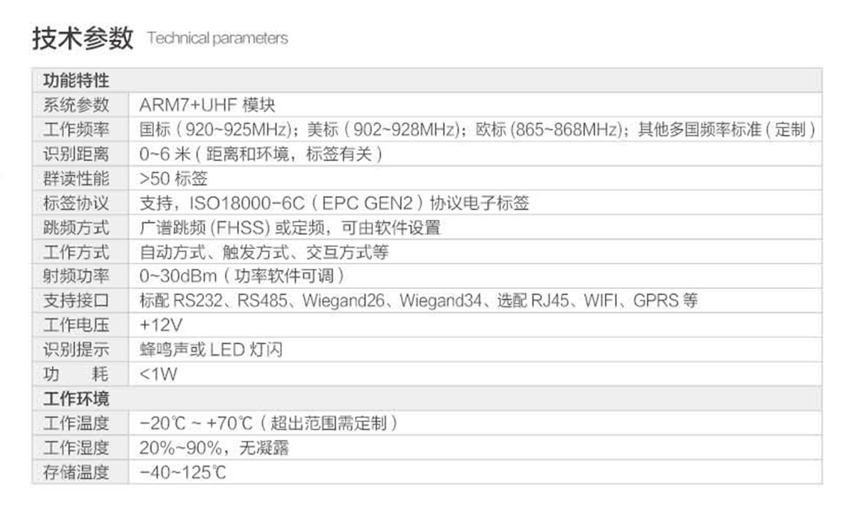 本产品是一款固定式精巧型的读写器,兼容ISO18000-6C和ISO18000-6B 标准,其工作频率为902MHz~928MHZ,外观精巧,读写性能出众。该读写器可广泛应用于出入口通道、仓储物流管理、零售物流中心管理、企业运输管理和自动化生产线管理等领域。